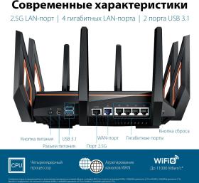 | Особенности антенн | 2,4 ГГц 4x4 5 ГГц-1 4x4 5 ГГц-2 4x4 |