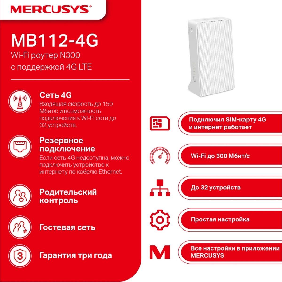 | описание | Беспроводной маршрутизатор MB112-4G от Mercusys. |