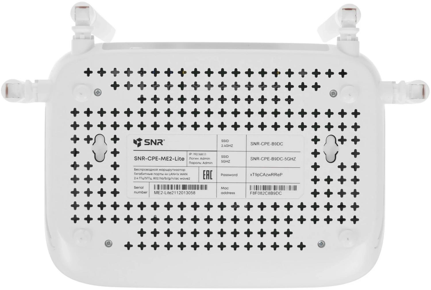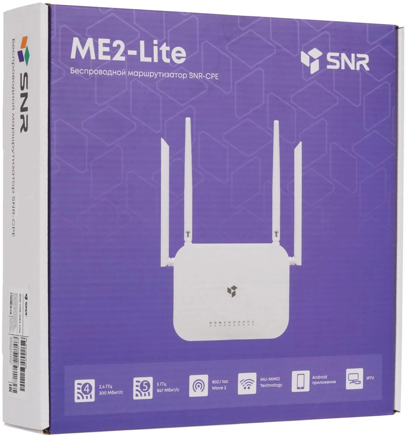 | Особенности | SNR-CPE-ME2-Lite (rev. B), 802.11a/b/g/n, 802.11ac Wave 2, 5xGE RJ45 |