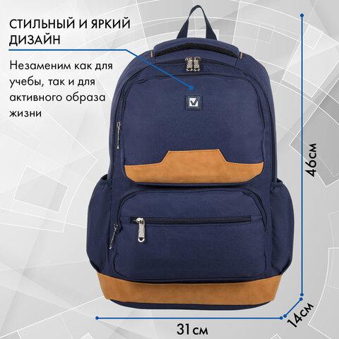 Рюкзак BRAUBERG STATES универсальный, карман-антивор, "Bronx", темно-синий, 46х31х14 см, 226349 / 4dealer.ru