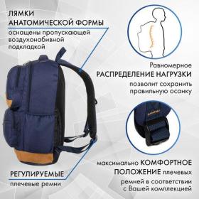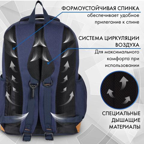 Рюкзак BRAUBERG STATES универсальный, карман-антивор, "Bronx", темно-синий, 46х31х14 см, 226349