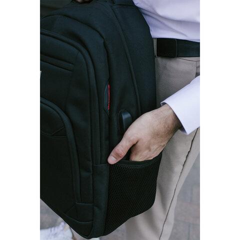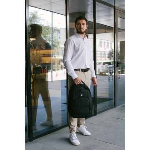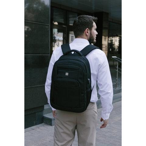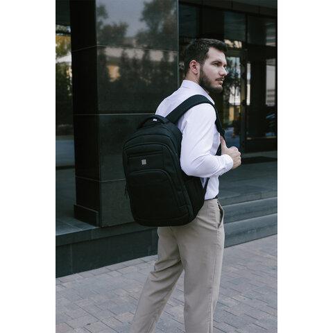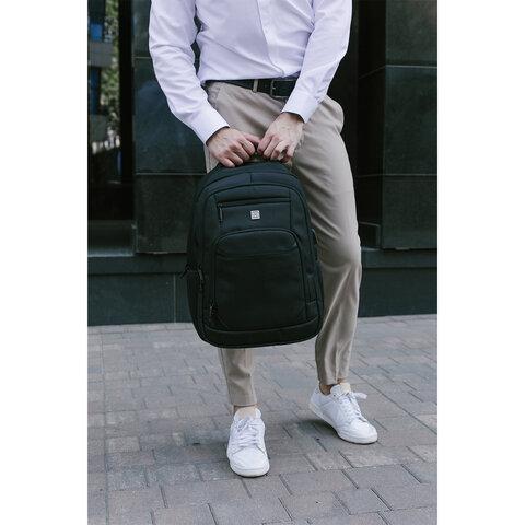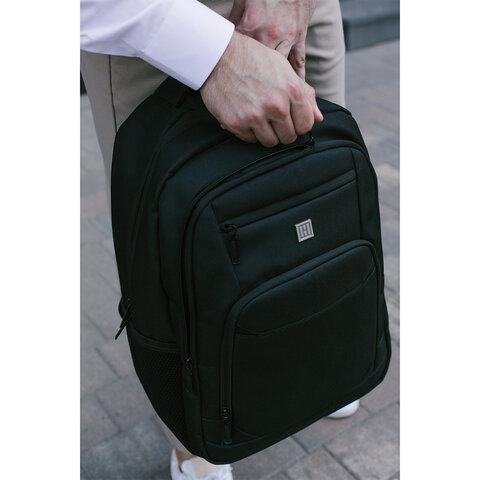 Его габариты 46x31x19 см и вес около 980 грамм обеспечивают вместительность без лишней тяжести, а черный цвет вписывается в любой образ. Материал рюкзака выполнен из качественного водостойкого полиэстера, что позволяет защитить вещи от влаги и загрязнений.