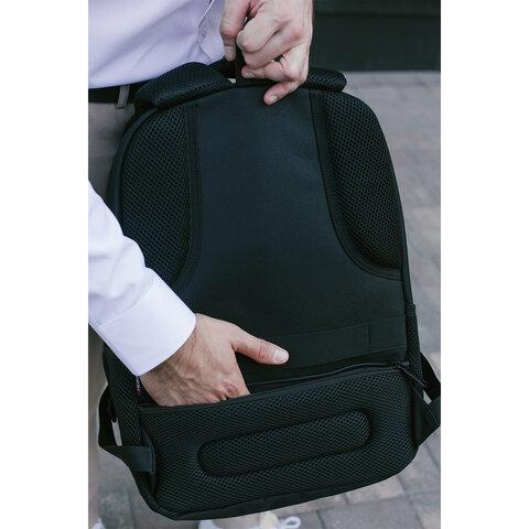 Рюкзак имеет два основных отделения на брендированных двухсторонних молниях с реверсивным замком, что гарантирует надежную защиту содержимого и удобство доступа. В первом отделении расположен специализированный карман для ноутбука диагональю до 16 дюймов, а также два сетчатых кармана для аккуратного хранения аксессуаров. Второе отделение оснащено внутренним карманом на молнии и удобным органайзером, позволяющим компактно разместить мелкие предметы – это идеальное решение для порядка и быстрого поиска вещей.