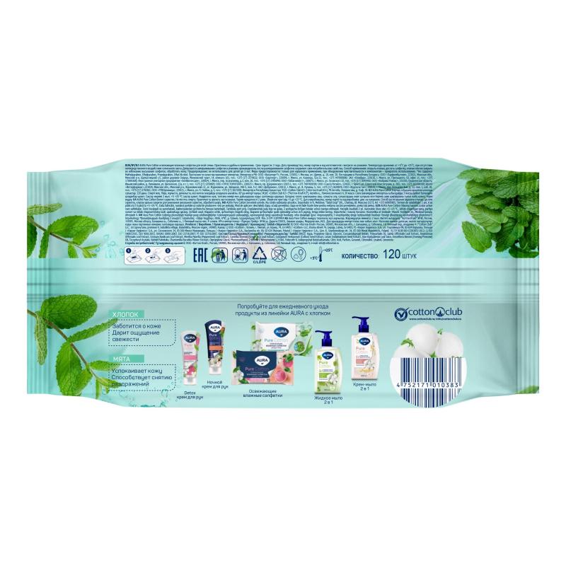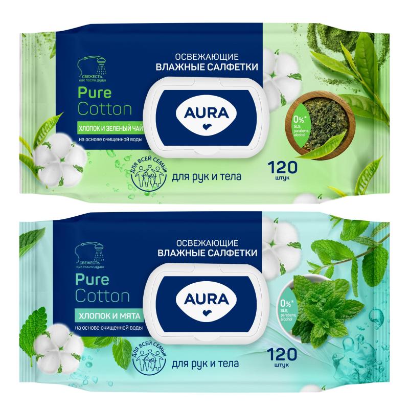 Влажные салфетки AURA освежающие эффективно очищают кожу рук благодаря нежному материалу и специально разработанной формуле лосьона на основе очищенной воды.Подходят для ежедневного использования. Салфетки пропитаны специальным лосьоном, который бережно очищает кожу, не оставляя ощущение липкости. Экономичная упаковка с крышкой-клапаном содержит - 120 шт. Размер - 17х15 см.