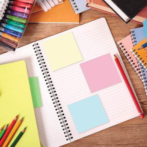 Яркие самоклеящиеся листочки привлекают к себе внимание и удобны для заметок, объявлений и других коротких сообщений.Стикеры 4 пастельных цветов (желтый, розовый, зеленый, синий) в форме куба 76х76 мм состоят из 400 листов. Плотность бумаги составляет 75 г/м2. Клейкий слой - 22 Н/м. Легко клеятся к любой поверхности. Не оставляют следов. Упакованы в полиэтиленовую пленку.