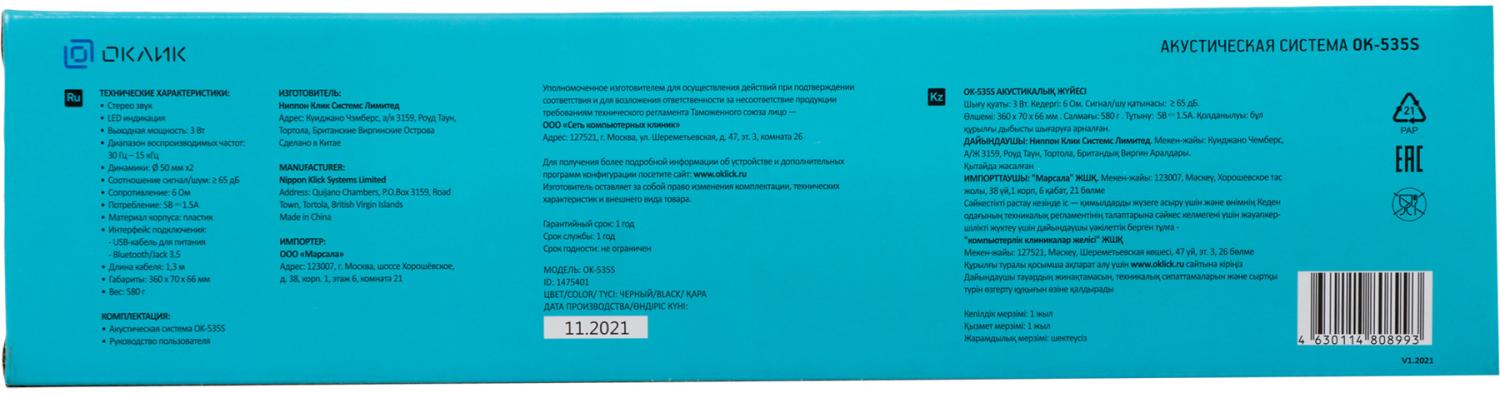Саундбар Оклик OK-535S 1.0 черный 6Вт / 4dealer.ru