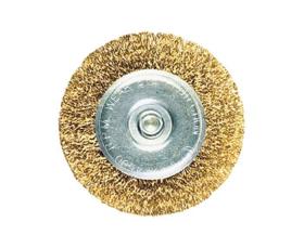 Описание Плоская щетка для дрели Matrix 74448 диаметром 75 мм, со шпилькой, с щетиной из латунированной витой проволоки, предназначена для бережной очистки металлических, деревянных, пластиковых поверхностей от загрязнений, старых лакокрасочных материалов и ржавчины.