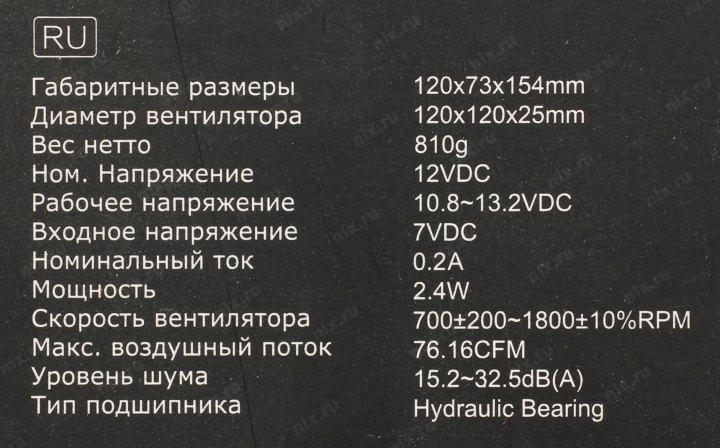 | Конструкция системы охлаждения | 4 тепловые трубки диаметром 6 мм |