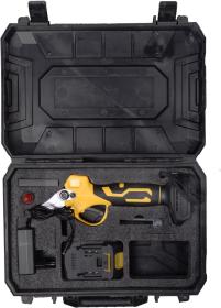 | Комплект поставки | Секатор аккумуляторный — 1 шт. Аккумулятор — 1 шт. Паспорт продукции — 1 шт. Шестигранный ключ 4 мм — 1 шт. Шестигранный торцевой ключ 13 мм — 1 шт. Зарядное устройство – 1 шт. |