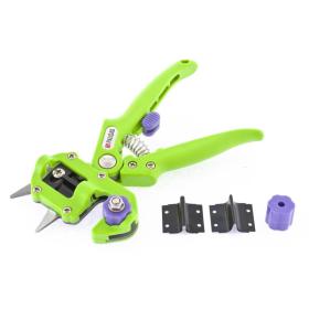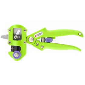 Прививочный секатор Palisad 60502 длиной 215 мм, со сменными ножами, используется для прививки плодовых растений черенком. Фигурные ножи секатора изготовлены из <nobr>рессорно-пружинной</nobr> стали, поэтому обладают высоким ресурсом (рассчитаны на 5000 срезов без дополнительной заточки). В комплекте<nobr>U-образный</nobr>, <nobr>V-бразный</nobr> и \<nobr>0028-образный</nobr> ножи, что позволяет работать с черенками различной толщины и плотности. Вырезы, сделанные на подвое и привое, идеально совместимы друг с другом, дополнительная подгонка им не требуется.Преимущества:Лезвия изготовлены из нержавеющей стали, поэтому не боятся коррозии.Режущая кромка с прецизионной заточкой производит качественный рез и продлевает ресурс инструмента.При помощи винта можно отрегулировать плотность смыкания лезвий, вернув секатору работоспособность в случае ухудшения качества реза.Фиксатор надежно удерживает лезвия в нерабочем положении, поэтому инструмент безопасен в хранении и транспортировке.Прививочные ножи покрыты порошковой эмалью, что защищает их от ржавчины.Каждый фигурный нож рассчитан на 5000 срезов, поэтому инструмент долго не требует заточки.Рукоятки выполнены из полиамида, поэтому они устойчивы к воздействию ультрафиолета, а также выдерживают значительные нагрузки.Внешний вид и/или характеристики товара могут быть изменены производителем в соответствии с производственным процессом.