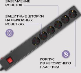 Сетевой фильтр Buro 600SE-16-1.8-B 1.8м (6 розеток) черный (коробка)