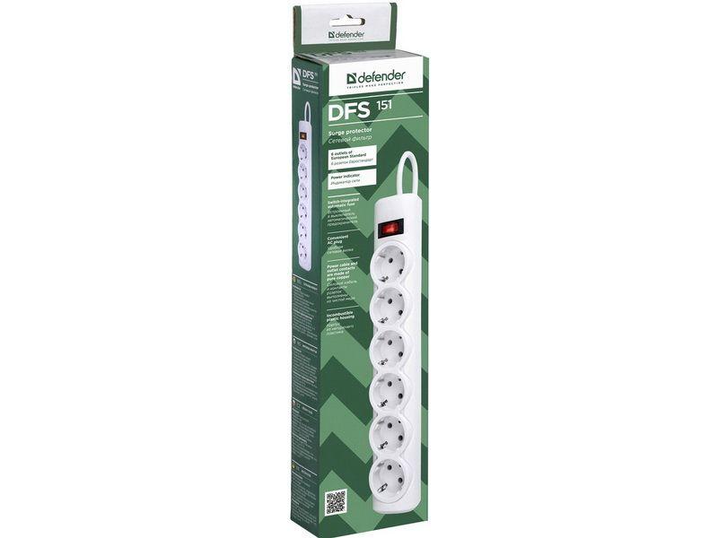 | Наименование для печати | Сетевой фильтр Defender DFS 151 1.8 м (99489), 6 розеток, белый |