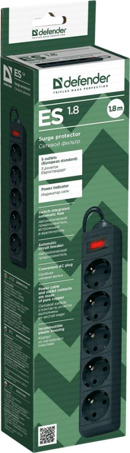 | Наименование для печати | Сетевой фильтр Defender ES 1.8 1.8 м (99484), 5 розеток, черный |