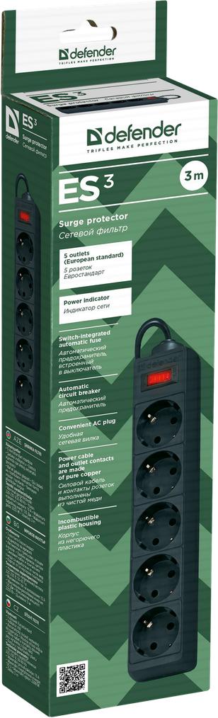 | Наименование для печати | Сетевой фильтр Defender ES 3.0 3.0м (99485), 5 розеток, черный |