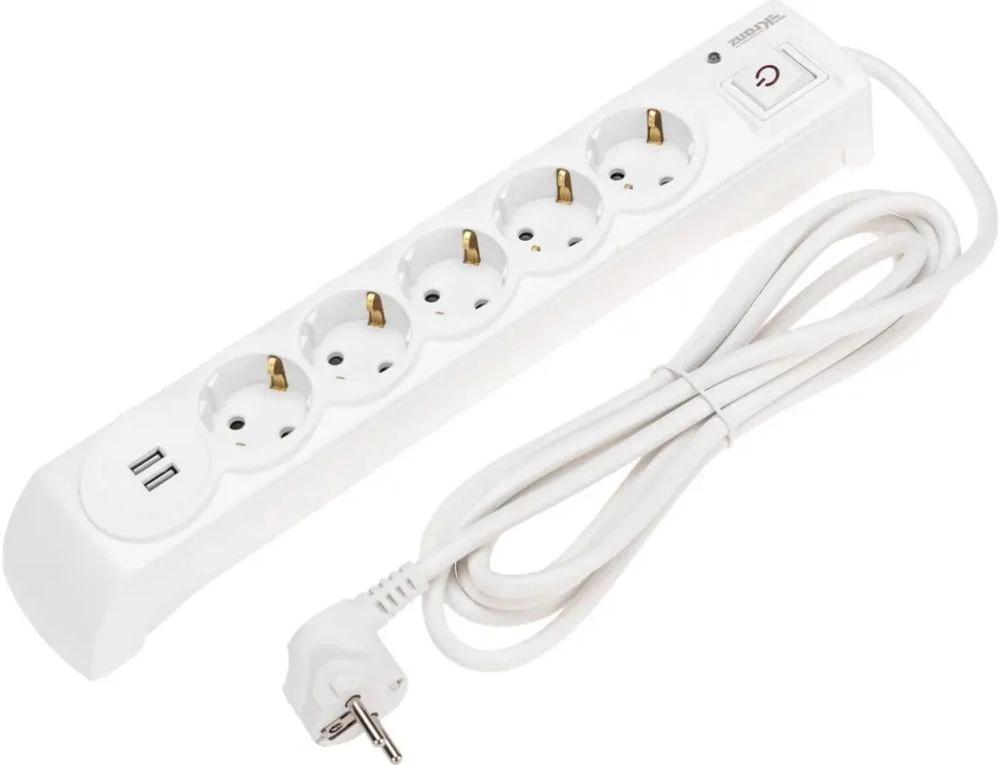 Сетевой фильтр Kranz 13-4700 3м (5 розеток) белый (коробка)