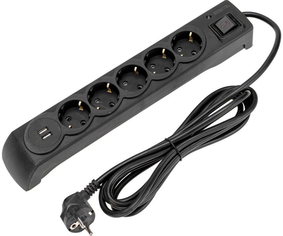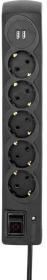 Сетевой фильтр Kranz 13-4702 3м (5 розеток) черный (коробка)