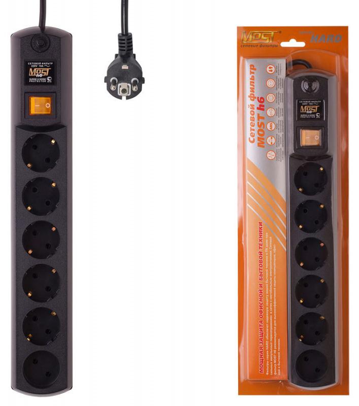 Сетевой фильтр Most H6 2м (6 розеток) черный (коробка)
