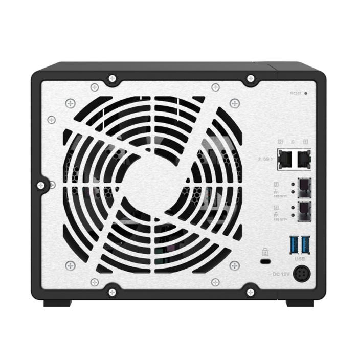 Сетевой накопитель TS-932PX – экономичное и производительное решение с поддержкой четырех 2,5” SSD и пяти 3,5” HDD или SSD. NAS TS-932PX – на базе четырехъядерного процессора с 64х битной архитектурой AnnapurnaLabs Alpine AL324 ARM® Cortex-A57 1,7 ГГц с поддержкой авто-тиринга Qtier, обеспечивающего рациональное использование производительности дисков при операциях записи и чтения. TS-932PX оснащен сетевыми портами 10 Гбит/с SFP+ и 2,5 Гбит/с обеспечивающими высокую пропускную способность для оптимизации совместной работы в команде и доступа к файлам.
