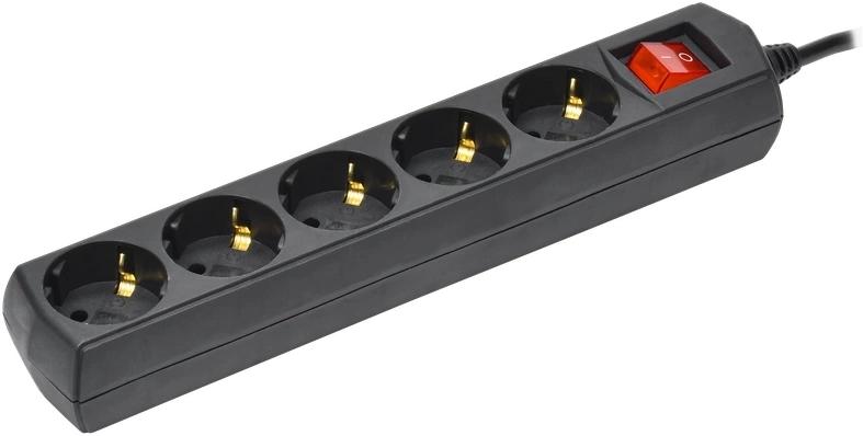 Сетевой удлинитель IEK У05В 3м (5 розеток) черный (пакет ПЭ) / 4dealer.ru