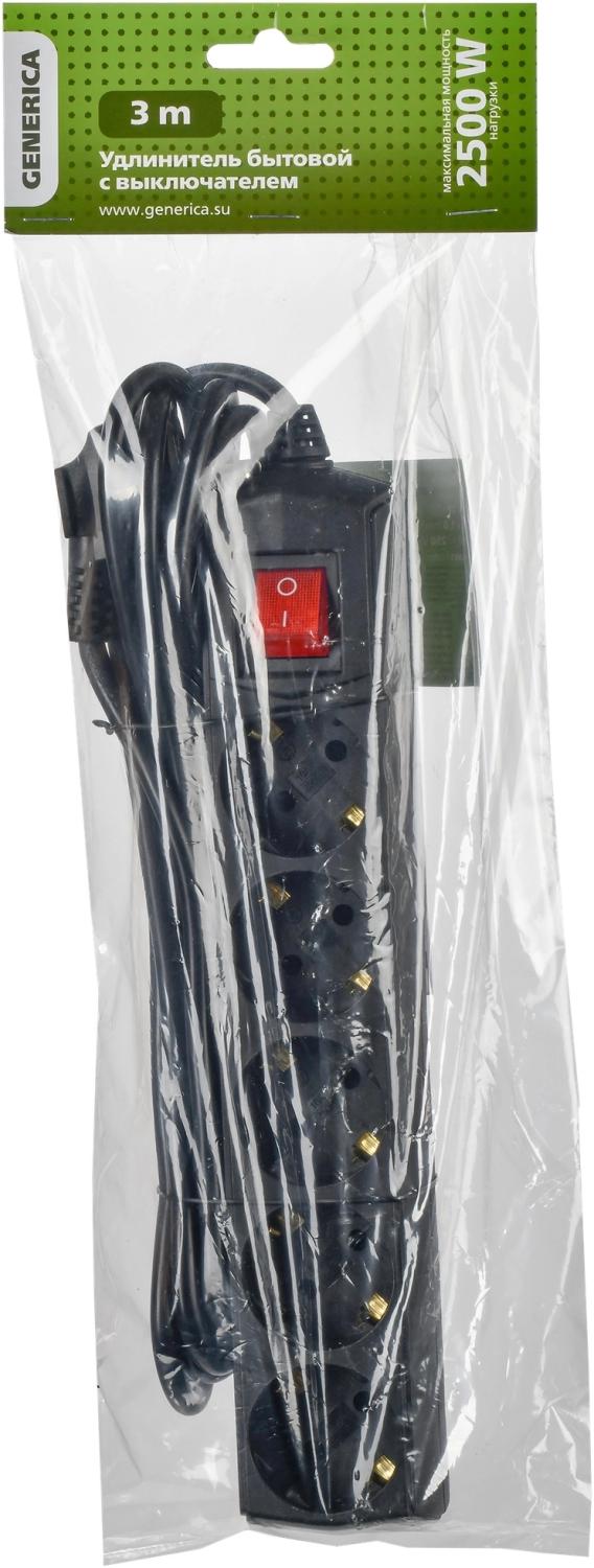 Сетевой удлинитель IEK У05В 3м (5 розеток) черный (пакет ПЭ)
