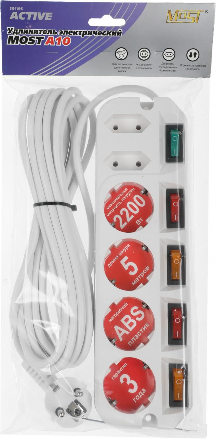 Сетевой удлинитель Most A10 5м (6 розеток) белый (коробка) / 4dealer.ru