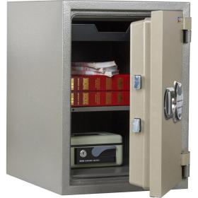 Внимание! Пожалуйста, проверяйте цвет изделия до начала сборки! Цвет на изображении товара в интернет-магазине или в печатном каталоге может отличаться от оригинала из-за особенностей цветопередачи.<br><br>Сейф Valberg FRS-49 EL предназначен для защиты документов и ценностей при пожаре, при заливке двери и корпуса используется запатентованный состав огнестойкого бетона. Имеет тепловой замок, усиленный огнестойким уплотнителем. Испытания на огнестойкость проведено с анкерным отверстием.<br>— огнестойкость — ГОСТ Р 57384-2017, класс 60Б;<br>— ригельная система запирания;<br>— замок — 2;<br>— количество полок — 1 и лоток;<br>— тип покрытия — порошковое;<br>— цвет корпуса — оттенок коричневого с эффектом молотковой эмали;<br>— возможность анкерного крепления к полу.<br>Гарантия — 5 лет (на электронные замки — 1 год). Элементы питания электронного замка — типоразмер ААА (1,5 v) — 4 штуки.<br><br>Комплектуется кодовым электронным замком оснащённым функцией открытия с помощью отпечатка пальца + ключевой замок.<br><br>Условия доставки по Москве и в другие города России уточняйте у оператора.<br><br>Дополнительные элементы (папки, кэшбоксы) в комплект сейфа не входят и заказываются отдельно.