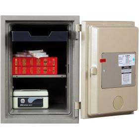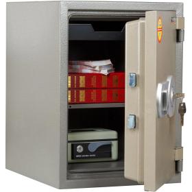 Сейф огнестойкий Valberg FRS-49 KL. Предназначен для защиты документов и ценностей при пожаре, при заливке двери и корпуса используется запатентованный состав огнестойкого бетона. Имеет тепловой замок, усиленный огнестойким уплотнителем. Испытания на огнестойкость проведено с анкерным отверстием. Оборудован cъемными пластиковыми ножками. Комплектуется пластиковым лотком. Комплектуется двумя ключевыми замками. <br>— огнестойкость — ГОСТ Р 57384-2017, класс 60Б; <br>— ригельная система запирания; <br>— количество полок — 1 (съемная); <br>— тип покрытия — порошковое; <br>— цвет корпуса — оттенок коричневого с эффектом молотковой эмали; <br>— возможность анкерного крепления к полу. <br><br>С 05.02.2019 изменен вид замка на: 1 ключ и поворотная ручка. <br><br>Дополнительные элементы (папки, кэшбоксы) в комплект сейфа не входят и заказываются отдельно. <br><br>Изображения товаров на сайте не могут гарантировать точную цветопередачу.