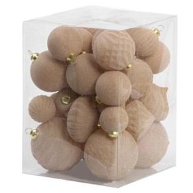 Наборы украшений для ели ЗОЛОТАЯ СКАЗКА позволят с легкостью и со вкусом украсить новогоднюю ель в едином стиле. Наборы упакованы в элегантную подарочную коробку.Набор украшений для ели включает в себя 35 предметов разной формы.