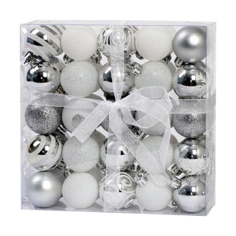 16 шаров серебристого цвета с глянцевым эффектом и рисунком ( 4 см).
