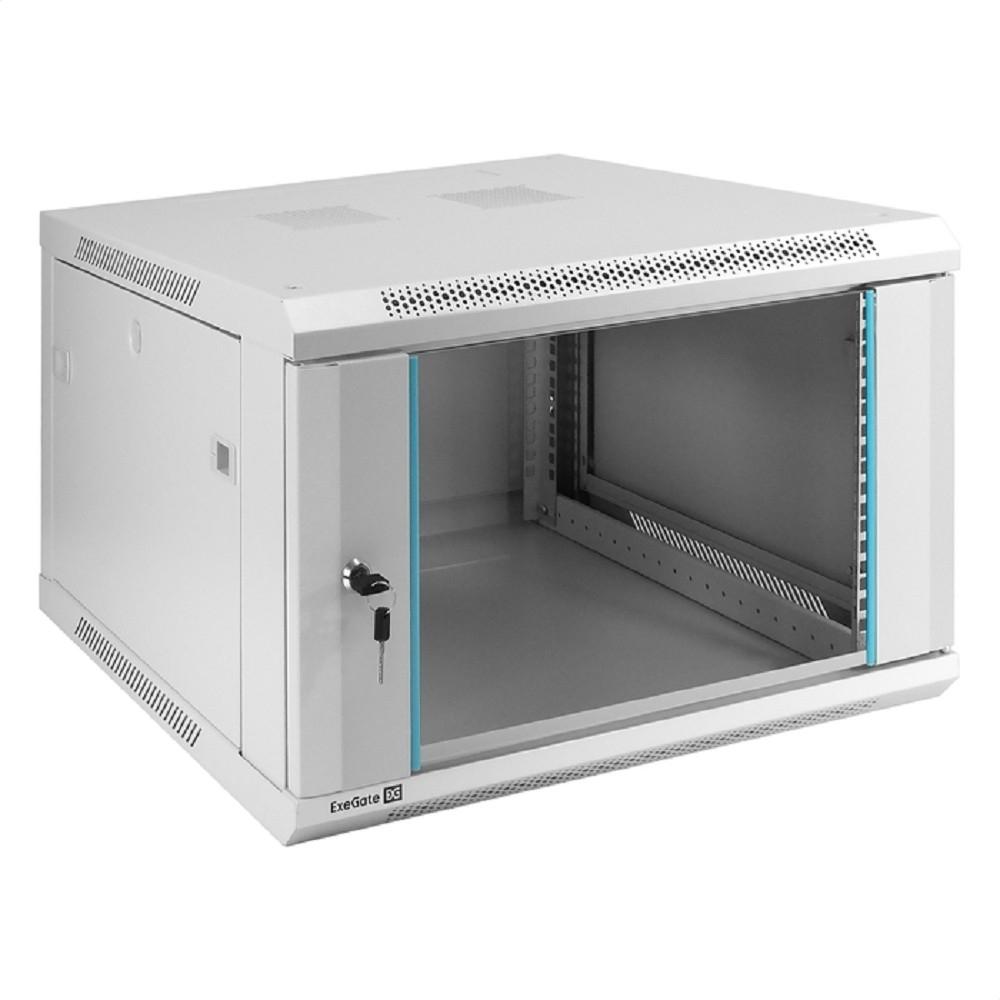 Шкаф телекоммуникационный настенный 19" 6U ExeGate EX298600RUS стеклянная дверь серый / 4dealer.ru