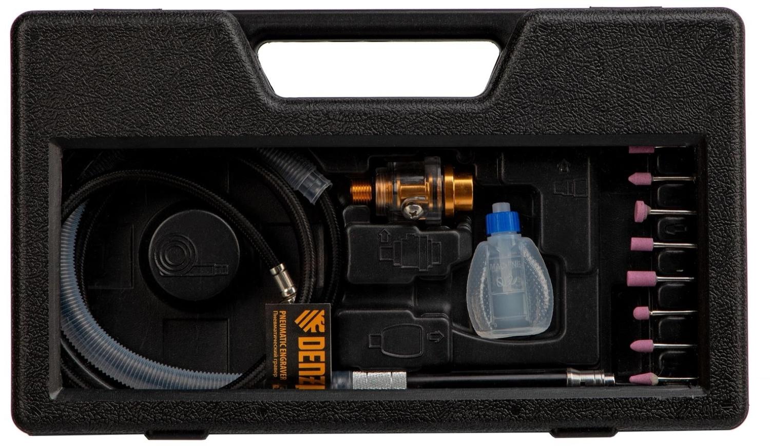 | Комплектация | Пневмогравер, штуцер 1/4", шлифовальные камни - 10 шт., влагоотделитель, масленка, гаечный ключ - 2 шт., кейс, руководство по эксплуатации и гарантийный талон. |