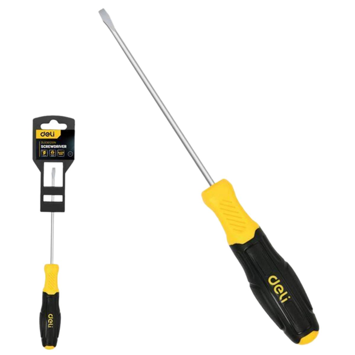 Шлицевая отвертка Deli DL6361251N 6х125мм сталь Cr-V, двухкомпонентная прорезиненная рукоять / 4dealer.ru