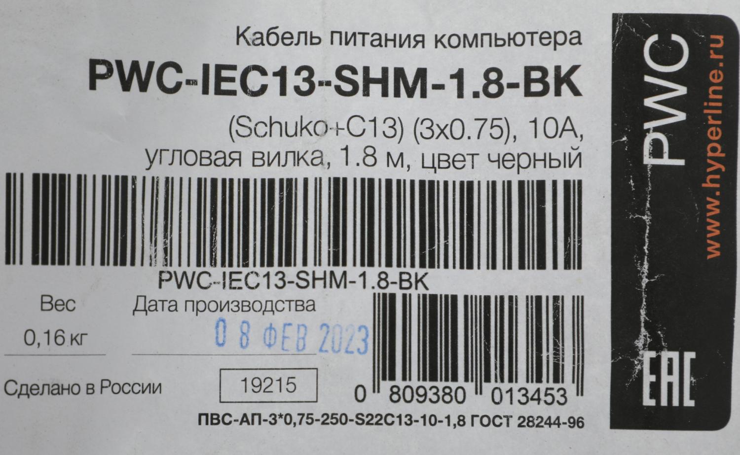 | Материал проводника | медь |