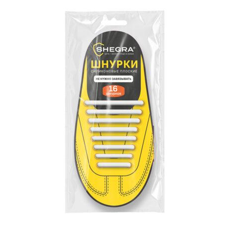 Шнурки силиконовые плоские БЕЛЫЕ 16 шт., ширина 7 мм, SHEGRA, 701716 / 4dealer.ru