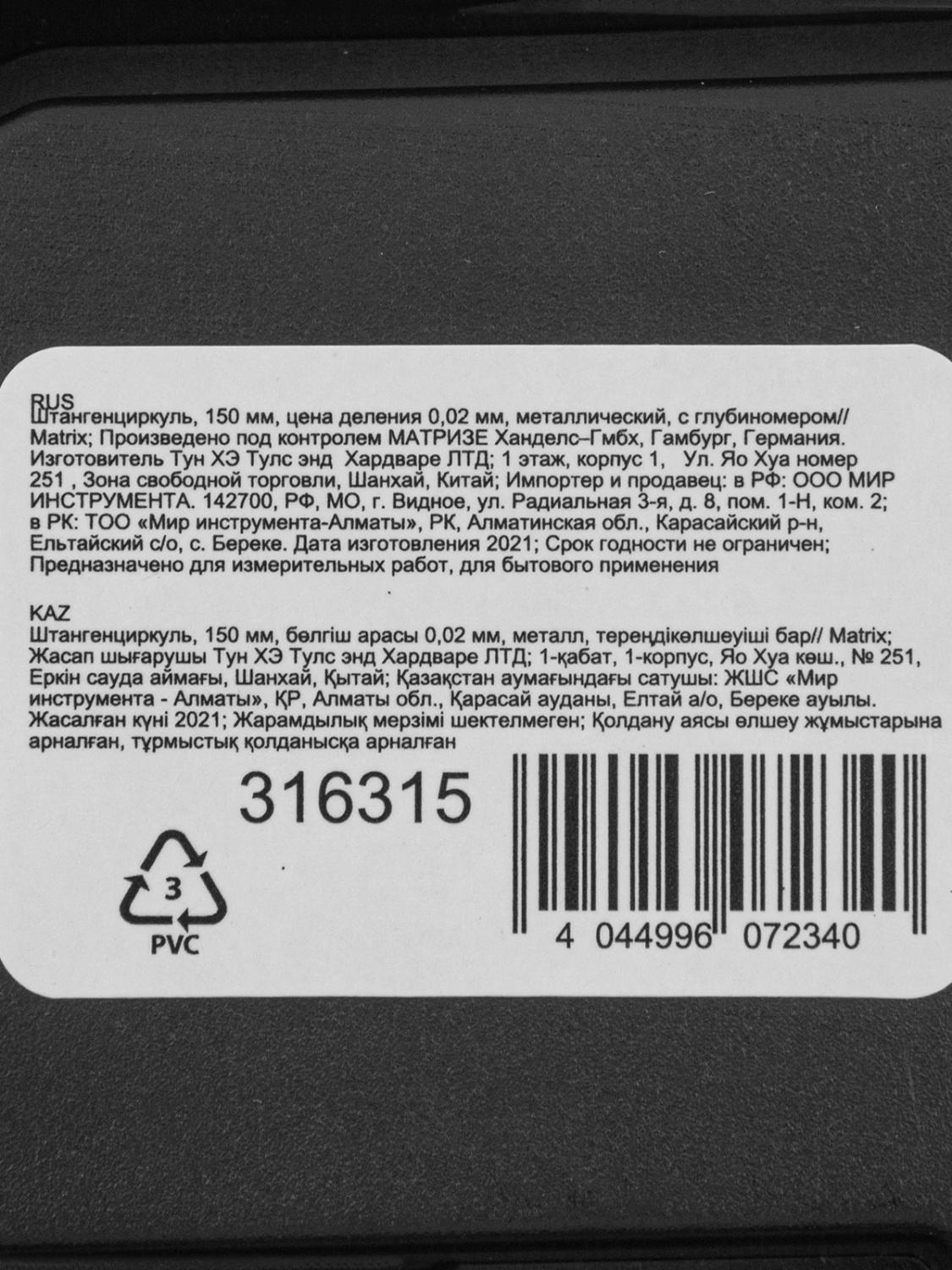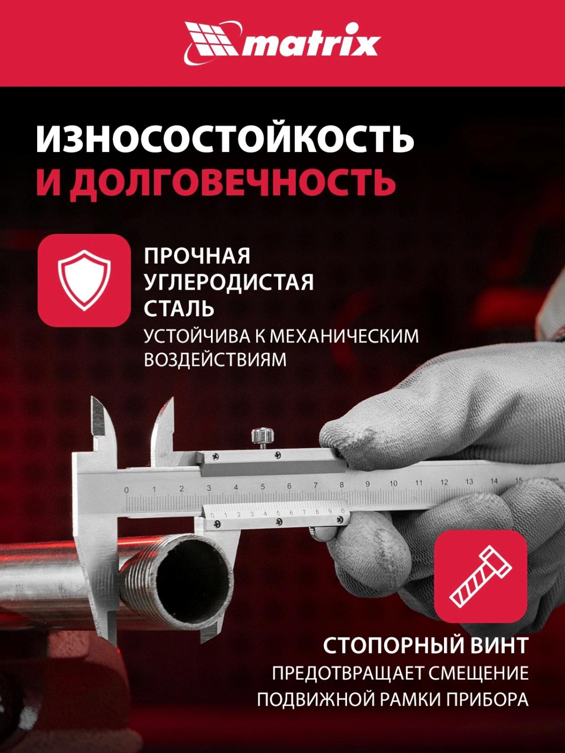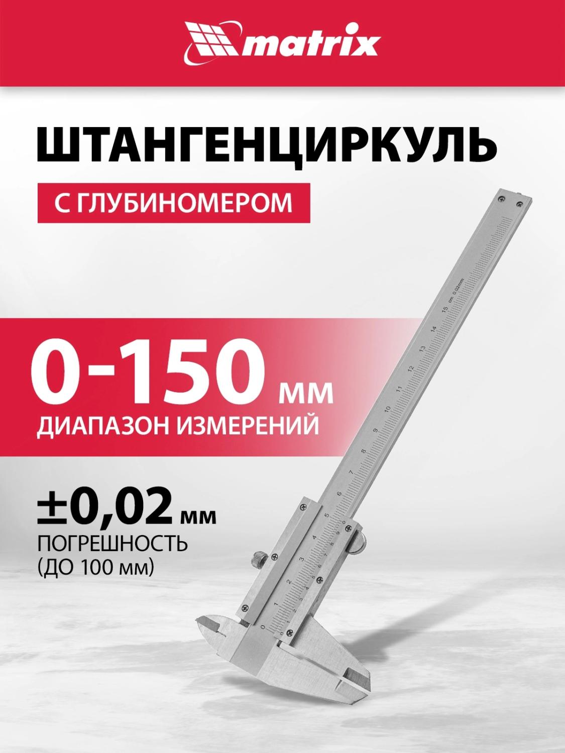 | Описание | Металлический штангенциркуль с глубиномером Matrix 316315, 150 мм., со значением отсчета по нониусу 0,02 мм, используется для быстрого определения размеров внутри и снаружи деталей, а также глубин отверстий и канавок — для этого предусмотрен глубиномер. |