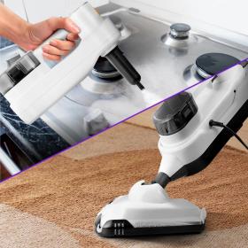 | Описание | Стильная паровая швабра с функцией вертикальной парковки «2 в 1» КТ-1072 — универсальное и современное устройство, которое поможет избавиться от пыли и грязи с помощью мощной струи пара, а также продезинфицирует обрабатываемую поверхность. |