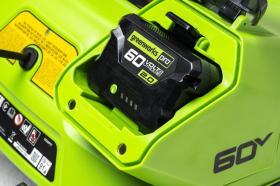 | Особенности | Две LED-фары позволяют работать даже при недостаточном освещении, кнопка-предохранитель защищает от случайного включения инструмента, а ручка легко складывается для более компактного хранения. Инструмент работает от аккумуляторной батареи G-MAX 60V. |