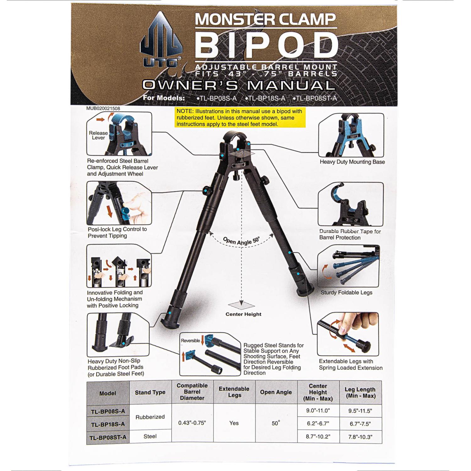 Сошки Leapers регулируемыена ствол диаметром 109-19ммрегулир.высота 22-26см2 положен.опоралюм. / 4dealer.ru