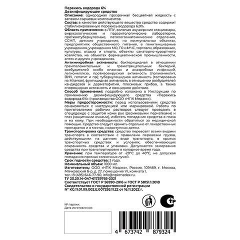 Средство дезинфицирующее перекись водорода 6%, 1 л, ЛЮИР / 4dealer.ru