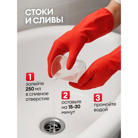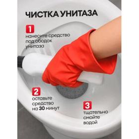 Способ применения: Ванная, раковина: нанести средство на поверхность, обработайте щеткой или губкой, оставить на 1 минуту, смыть тщательно водой. Унитаз: нанесите под ободок унитаза и оставьте на 30 минут, затем смойте водой. Стоки и сливы: залейте 250 л в сливное отверстие, оставьте на 15-30 минут, затем промойте водой. Для мытья полов и рабочих поверхностей разбавить 60 мл средства на 5 л воды. Отбеливание белья – развести 40 мл средства на 5 л теплой воды, замочить белье в растворе на 45 минут, затем постирать обычным способом.
