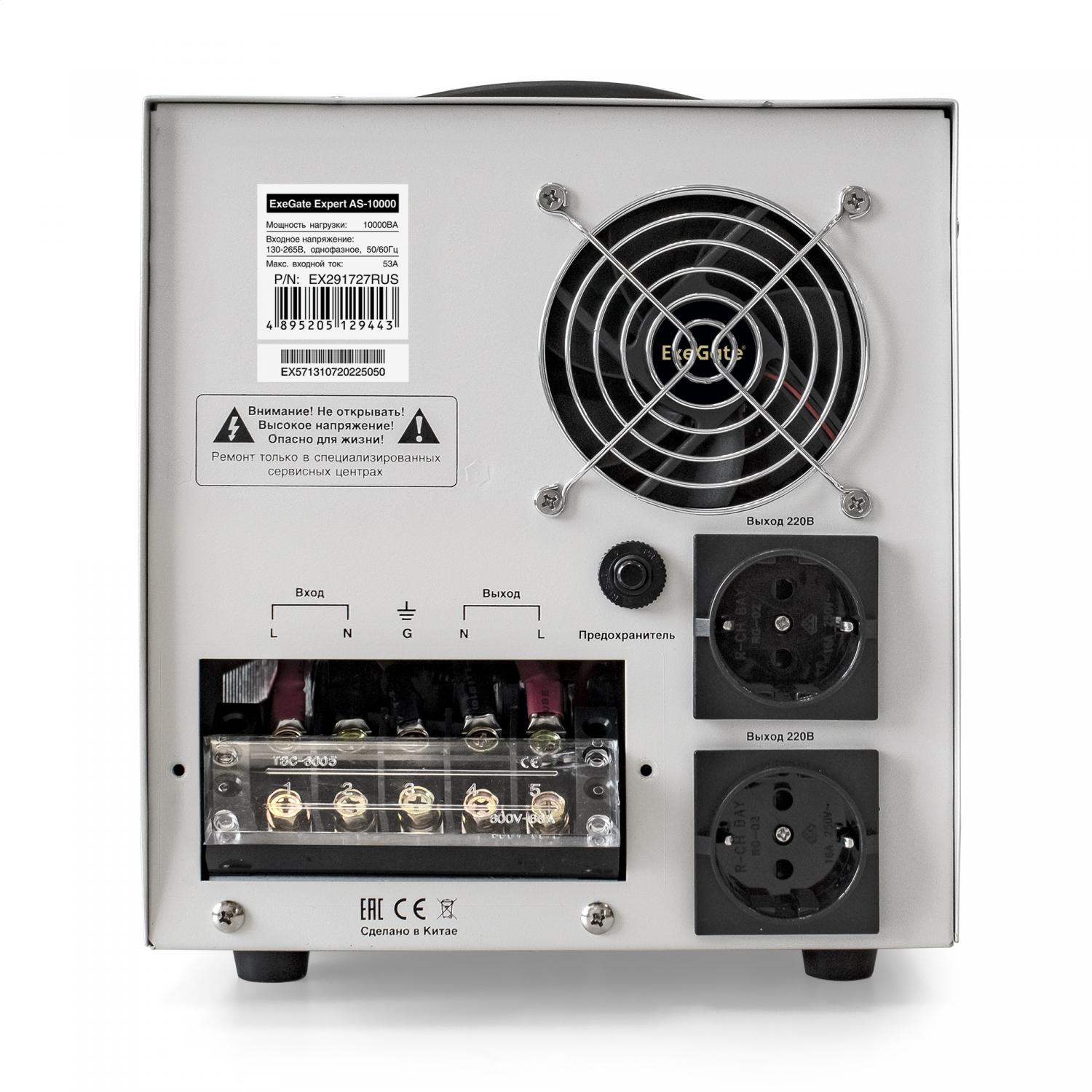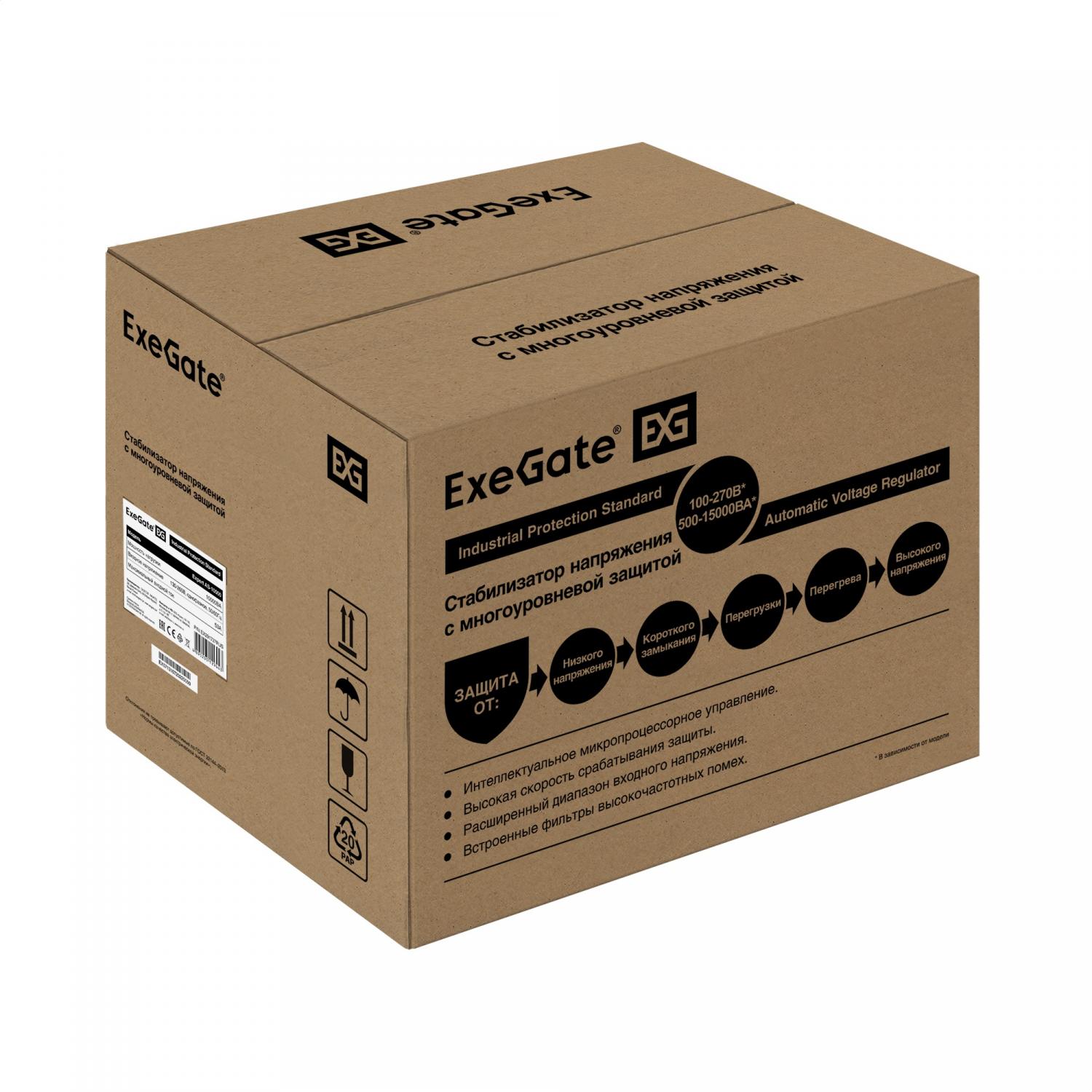Стабилизатор напряжения ExeGate Expert AS-10000 10000ВА выход 220В±8% 2*Schuko EX291727RUS / 4dealer.ru