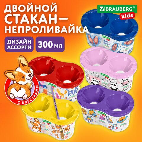 Стакан-непроливайка BRAUBERG KIDS выполнен из прочного пластика и предназначен для промывания кисточек в процессе рисования. Специальная форма стакана исключает возможность вытекания воды.Стакан выполнен из прочного пластика и имеет 2 вместительных резервуара для воды. Специальная форма крышки стакана исключает возможность вытекания воды. Линия на прозрачном корпусе указывает на максимально возможный уровень наполнения. На крышке имеются углубления для размещения кисточек. Полный объем одного отделения - 150 мл. Объем до уровня наполнения - 50 мл. Общий объем- 30 мл.