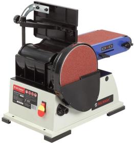 Комплектация Станок, кожух шлифовального диска, стол шлифовального диска, диск шлифовальный, стол шлифовальной ленты, опора боковая - 4 шт., перекладина каркасного основания верхняя - 4 шт., перекладина каркасного основания верх., упор угл. в сборе, перекладина каркасного основания нижняя - 4 шт., ножка - 4 шт.