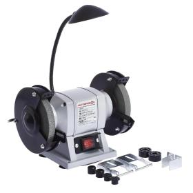 Машина настольная шлифовальная предназначена для заточки режущего инструмента, используемого для работы на металлорежущих станках (резцы, сверла), для заточки лезвий ножей, топоров, ножниц, также применяется для снятия фасок и заусенцев, приданию деталям определенной формы за счет вращения абразивного круга (камня), в качестве привода используется асинхронный двигатель. Особенности: — удобная регулируемая подсветка зоны заточки; — металлический корпус; — наличие упоров для заточки; — наличие щитков для защиты оператора от искр; — оптимальная мощность; — простота применения.<br><br><!--noindex-->Внешний вид и/или характеристики товара могут быть изменены производителем в соответствии с производственным процессом.<!--/noindex-->