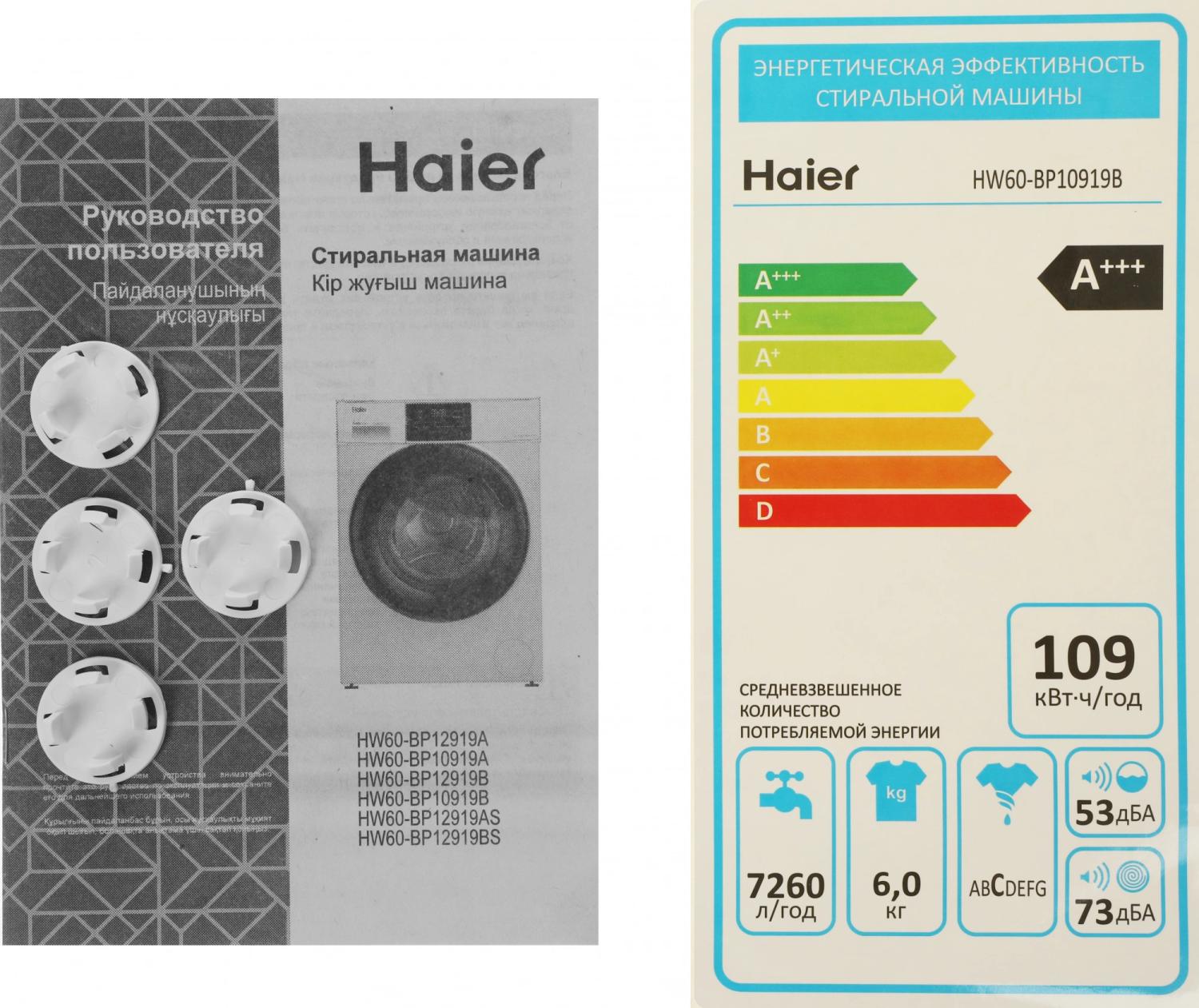 Стиральная машина Haier HW60-BP10919B класс: A+++ загр.фронтальная макс.:6кг белый инвертор / 4dealer.ru
