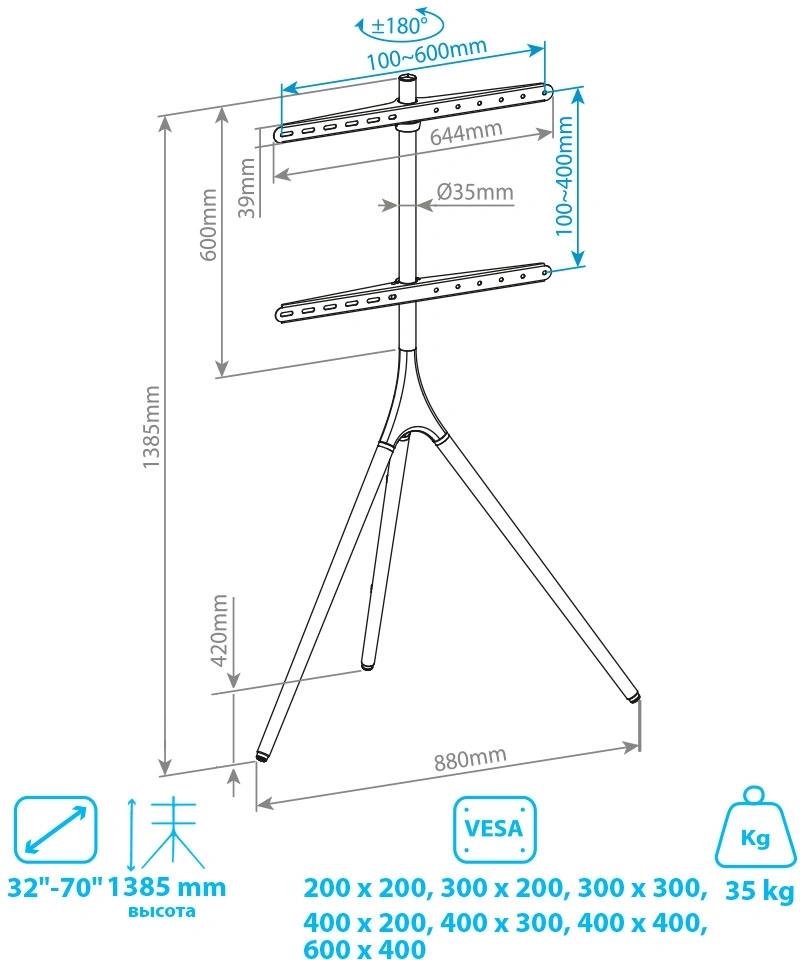 | Поддержка крепления VESA | 200x200, 600x400 |
