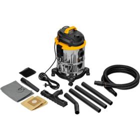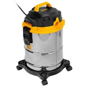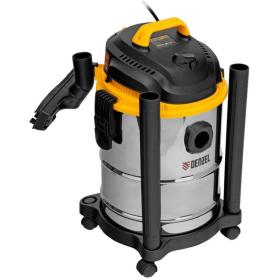 Пылесос строительный Denzel SVC15 28201 мощностью 1200 Вт, с баком объемом 15 л и шлангом длиной 2 м, предназначен для уборки бетонной, кирпичной пыли, опилок, стружки, также предусмотрена функция сбора воды. Пылесос используется во время проведения строительных и ремонтных работ, будет полезен для поддержания чистоты в мастерской, гараже, производственном помещении. Преимущества Термозащита - в случае перегрева двигатель автоматически отключается, что предотвращает его поломку. Влагозащита - внутренние компоненты надежно изолированы от попадания пыли и брызг воды по стандарту IP44. Функция выдува - пылесос можно использовать для очистки от мусора дорожек, ступеней, труднодоступных мест, а также для продувки деталей от пыли. Удобная уборка в узком пространстве - в комплект поставки входит щелевая насадка, облегчающая удаление пыли из ящиков, шкафов, отопительных радиаторов и т. д. Автоматический контроль уровня жидкости при сборе воды - как только количество воды в баке достигает предельно допустимого уровня, срабатывает предохранительный клапан и всасывание прекращается.