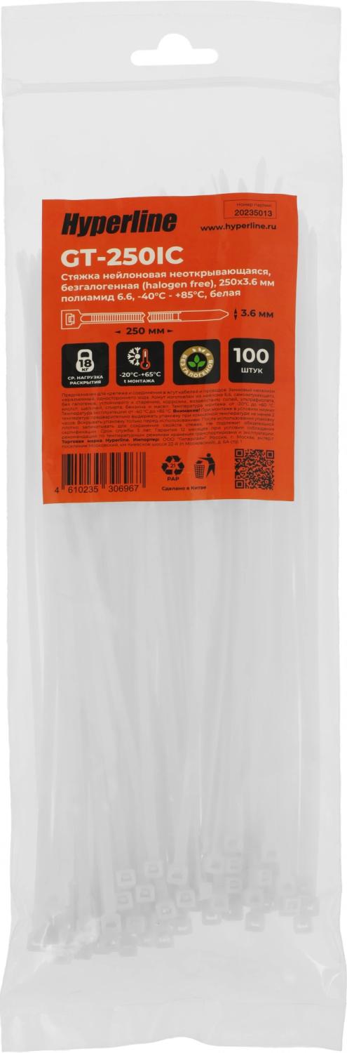 Стяжка эластомерная Hyperline GT-250IC 250x3.6мм (упак:100шт) полиамид белый / 4dealer.ru