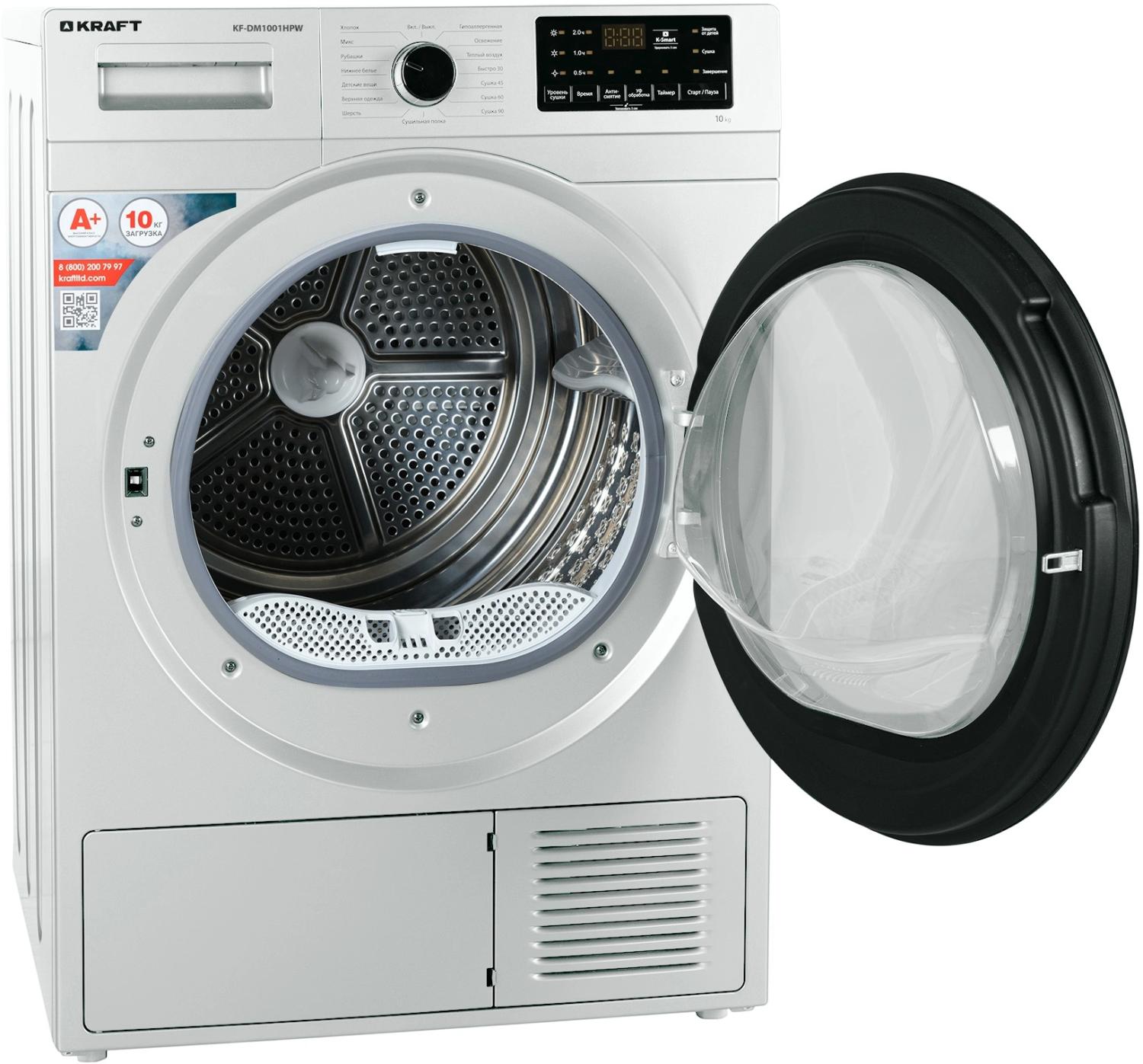 Сушильная машина Kraft KF-DM1001HPW кл.энер.:A+ макс.загр.:10кг белый / 4dealer.ru