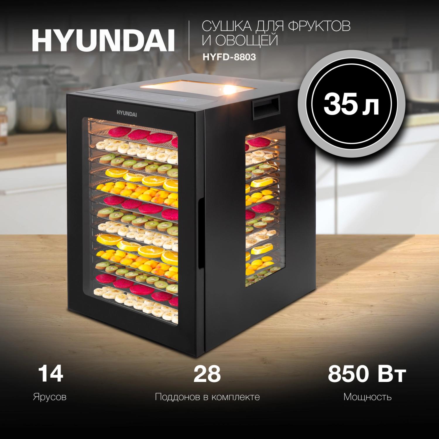 Сушка для фруктов и овощей Hyundai HYFD-8803 28под. 850Вт черный / 4dealer.ru